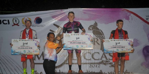 BERITA MALUKU. Pebalap Australia, Marcus Culey, mendominasi lomba balap sepeda internasional Tour de Molvcca, khususnya rute I yang dimulai dari Piru, Ibu Kota Kabupaten Seram Bagian Barat-Masohi, Kabupaten Maluku Tengah, dengan jarak tempuh 179,7 kilometer, Senin (18/9/2017).