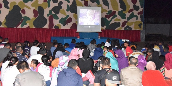 BERITA MALUKU. Prajurit dan Pegawai Negeri Sipil (PNS) serta keluarga besar Pangkalan Utama TNI Angkatan Laut (Lantamal) IX Ambon Nonton Bareng (Nobar) film G30S/PKI yang digelar di Marshalling Area Markas Komando (Mako) Lantamal IX, Jumat (22/9/2017) malam.