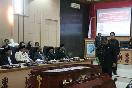 AMBON-MALUKU. Dewan Perwakilan Rakyat Daerah Kota Ambon menggelar Rapat Paripurna Khusus dalam rangka pelepasan Jenazah Almarhum Tomwin Rionaldo Tamaela, anggota DPRD Kota Ambon.
