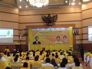 AMBON-MALUKU. “Kalau mau bertarung, harus serius, kalau diluar dari itu sebaiknya mundur sekarang. Kalau mau menjadi caleg targetnya harus menang,” demikian disampaikan Kordinator Bidang Pemilih Luar Negeri DPP Partai Golkar, Happy Bone Zulkarnain saat membuka orientasi fungsionaris yang diselenggarakan oleh DPD Golkar Maluku, Selasa (5/6) di Baileo Siwalima Karang Panjang.