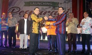 AMBON-MALUKU.  Pelaksana Tugas Gubernur Maluku, Zeth Sahuburua didampingi Dirjen Bimas Katolik, Kementerian Agama Eusabius Binsasi melauncing PestaPaduan Suara Gerejani (Pesparani) Katolik Tingkat Nasional Ke-I 2018 di Taman Budaya, Jalan Cut Nyak Dien Karang Panjang, Sabtu (8/6) malam itu.
