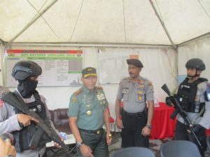 Dengan penuh keramahan, Mayjen TNI Suko Pranoto menyapa seluruh personil kepolisian maupun TNI AD yang tengah berjaga-jaga di kawasan itu.