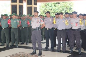 AMBON-MALUKU. Kapolres Pulau Ambon dan PP.Lease, AKBP Sutrisno Hady Santoso memimpin Apel bersama 3 (Tiga) Pilar Keamanan dan Ketertiban Masyarakat (Kamtibmas) pasca Pemilihan Kepala Daerah (Pilkada) Maluku, yang berlangsung di Tribun Lapangan Merdeka Ambon, Jumat (7/6).