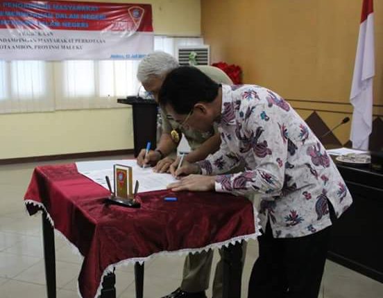 AMBON MANISE. Pemerintah Kota Ambon melakukan penandatangan nota kesepakatan bersama Institut Pemerintah Dalam Negeri (IPDN) tentang pendampingan masyarakat perkotaan yang berlangsung Kamis (12/11) di lantai II kantor Walikota Ambon.