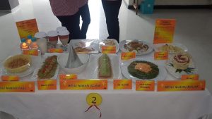 Kepala Bidang Ketahanan Pangan Dinas Pertanian & Ketahanan Pangan Kota Ambon, Silvia Abdullah dalam keterangannya menjelaskan, menu yang disajikan dalam lomba tersebut, terdiri dari Menu Makan Pagi, antara lain Pizza Amboina (berbahan dasar Sukun), Juice Merah Putih, dan susu 200ml; Menu Makan Siang, antara lain Ubi Pelangi, Kare Gumira, Ikan Panggang Kenari serta Manisan Salak; dan Menu Makan Malam, antara lain Selimut Kembang (berbahan Dasar Sukun), Ikan Spiral (Ikan Tuna), Urap Pucuk Beringin dan Pisang Madu.