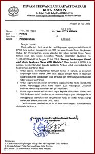 Dengan dasar itulah, DPRD Kota ambon akhirnya mengeluarkan Surat Rekomendasi yang ditujukan kepada Walikota Ambon, dan tembusan kepada Kadis DLDP Kota Ambon, Kepala Satuan Polisi Pamong Praja Kota Ambon, dan Ketua RT.002/RW.04 Kelurahan Wainitu dengan harapan penderitaan warga bisa segera dieksekusi oleh Pemkot. Namun alhasil, hingga saat ini, Rekomendasi tersebut yang juga dalah “HARGA DIRI” dari DPRD ibarat “sampah” yang tidak dipedulikan sama sekali.