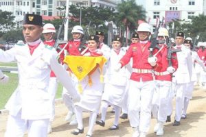Untuk baki bendera, dibawah oleh siswi Elsa Wihelmina Waremra. SMA Negeri Tiakur Kecamatan Letimulako, Kabupaten MBD.