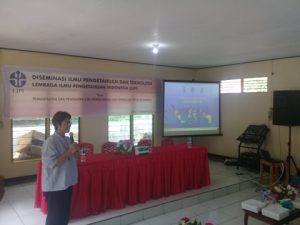 Sebelum diserahkan bibit tanaman produktif kepada perwakilan setiap kabupaten/kota oleh Anggota Komisi VII DPR RI, Mercy Barends, perwakilan warga dari beberapa desa di Kota Ambon, diberikan pelatihan oleh LIPI Kota Ambon bertajuk Diseminasi Ilmu Pengetahuan dan Teknologi Lembaga Ilmu Pengetahuan (LIPI) dengan tema Pemanfaatan dan Penerapan Ilmu Pengetahuan dan Teknologi.