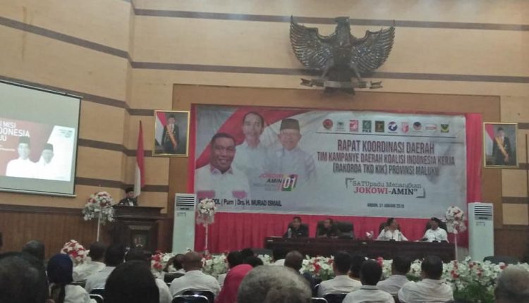 AMBONMANISE.COM- Ketua Tim Kampanye Daerah Koalisi Indonesia Kerja (TKD KIK) Provinsi Maluku, Murad Ismail mengatakan tim harus bekerja maksimal untuk meraih kemenangan besar bagi pasangan calon presiden/wakil presiden Joko Widodo-Ma`ruf Amin.