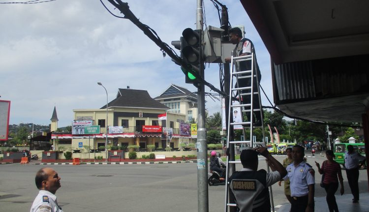 Petugas Dishub Kota Ambon Lakukan Perbaikan Lampu Lalu Lintas Di Tiga Lokasi